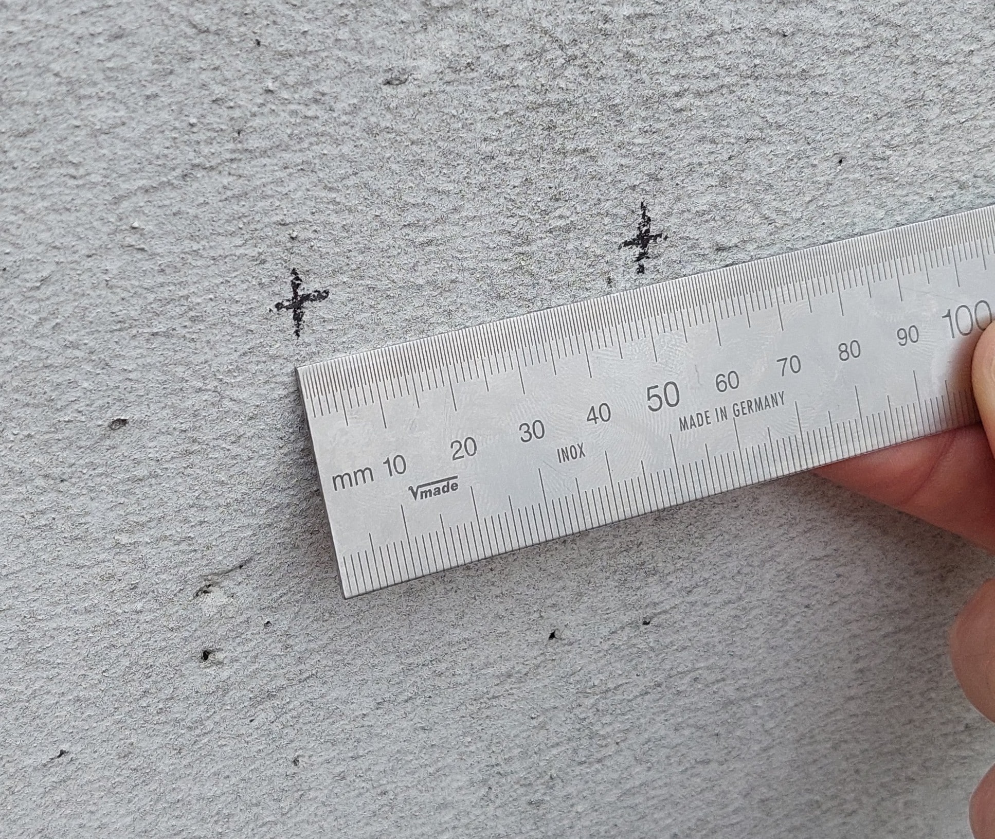 To mount the gauge, drill the holes, insert the anchors, prepare the fasteners + bracket to be fixed to the substrate, then place the inclinometer in the bracket and fine-tune the positioning.